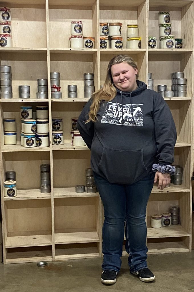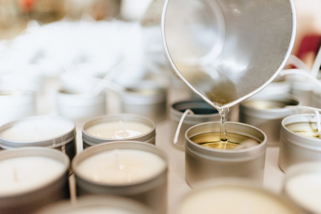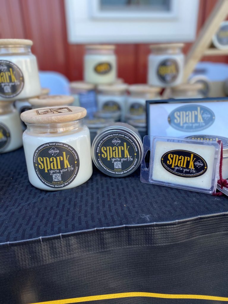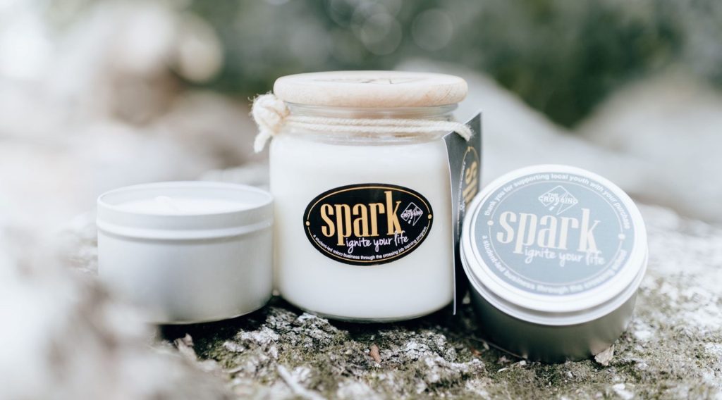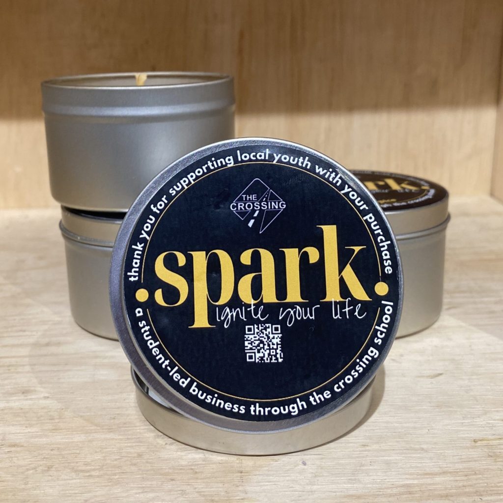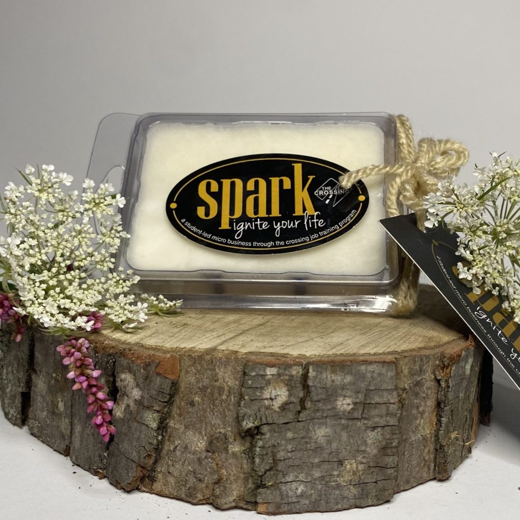 Our candles are hand-poured in small batches in Goshen, Indiana by our student team. They are made with pure, clean-burning soy wax and feature a cotton wick.